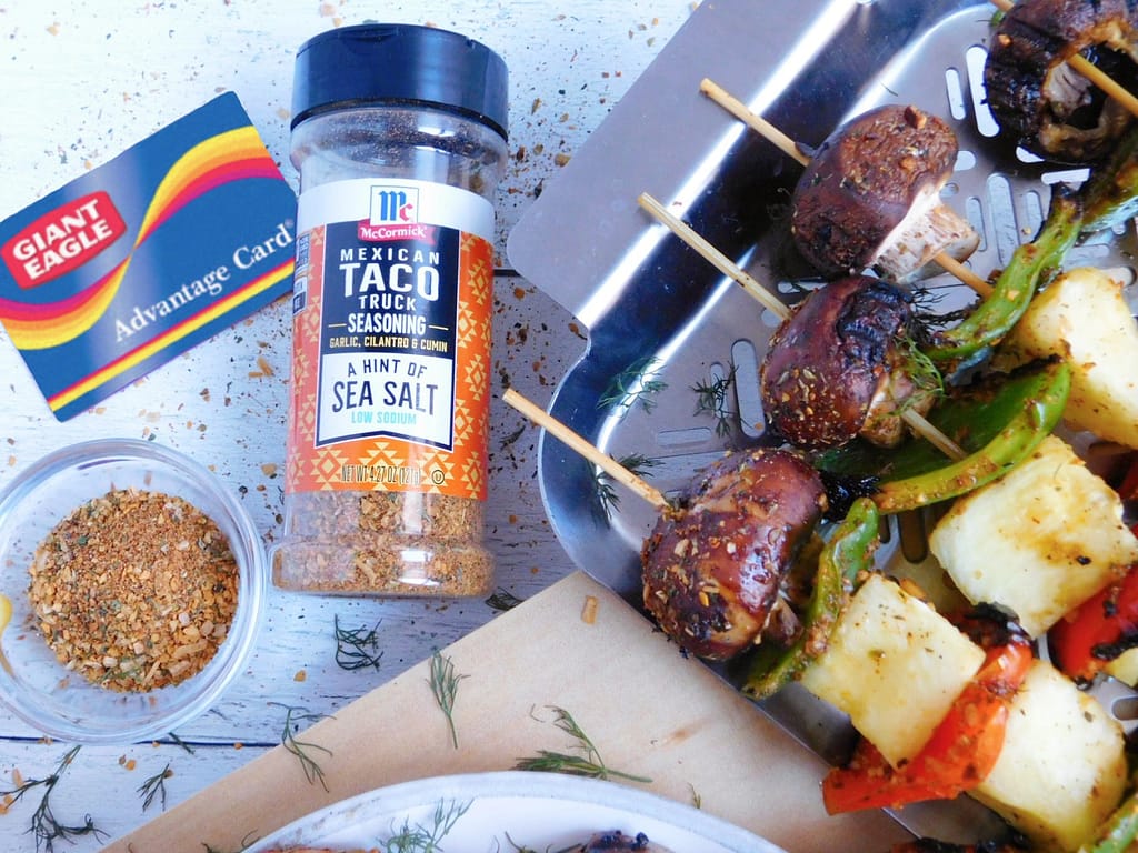 You can get everything you need to make Grilled Salmon Kabobs at your local Giant Eagle. Their fresh produce and dedication to sustainability have me sold. Now let’s fire up the grill so we can make some kebabs!